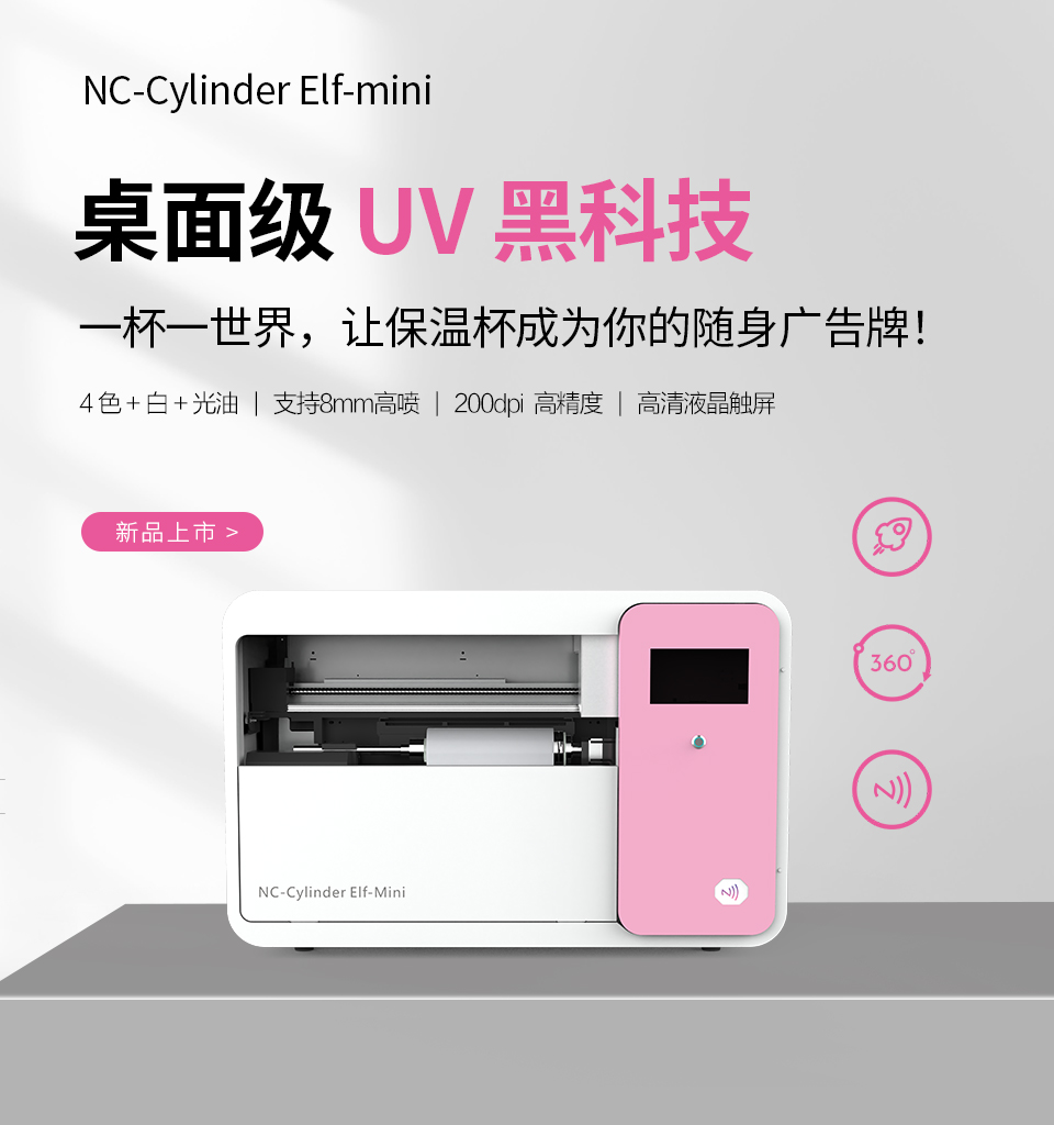 可加裝電動圓柱體治具,實現(xiàn)360度旋轉(zhuǎn)打印,馬克杯,保溫杯等柱形產(chǎn)品均可打印,滿足多樣化的定制需求。